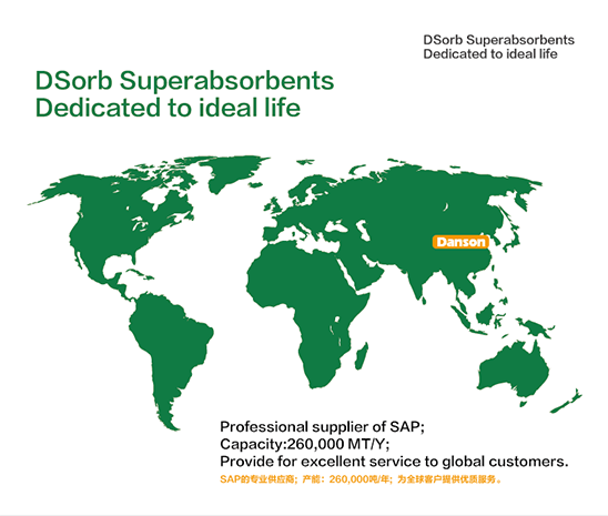 目前,丹森科技作为行业龙头企业,是宜兴地区第三家荣获AEO高级认证企业称号的企业,所生产的SAP主要用于纸尿裤、卫生巾、宠物垫、护理垫、溢乳垫等日用卫生用品领域,为全球约80个国家和地区的客户提供种类繁多的产品及服务,曾获得过“江苏省名牌产品”和“国家重点新产品”称号!