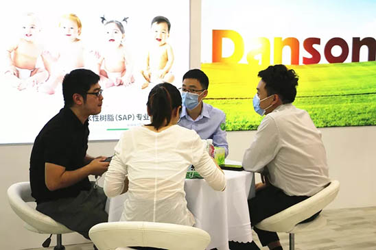 我们丹森科技展台吸引了金佰利、恒安、百亚等众多国内知名客户垂询、洽谈,主要来自江苏、浙江、广东、福建等地。
