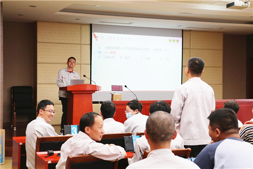 首先通过第一轮个人纸质答题环节,现场筛选出得分高的个人,然后进行3人一组随机分组,一共8组进行一、二、三等奖的角逐。此前,安环部首先在公司进行了安全知识竞赛题库征集活动,因此活动的所有题目均征集自员工,内容涉及安全生产常规知识、新《安全生产法》以及有关公司实验或生产过程中会遇到的安全知识等。